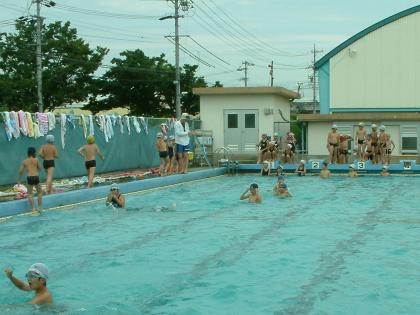 3年生の「浮く・泳ぐ運動」では、1,2年生の「水遊び」で身につけた動きに加え、水にもぐったり浮いたり、補助器具(ビート板)を使って泳いだりする楽しさを味わうことがねらいです。