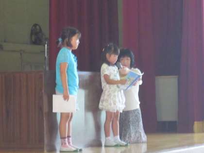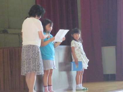 全校の前で発表しました。