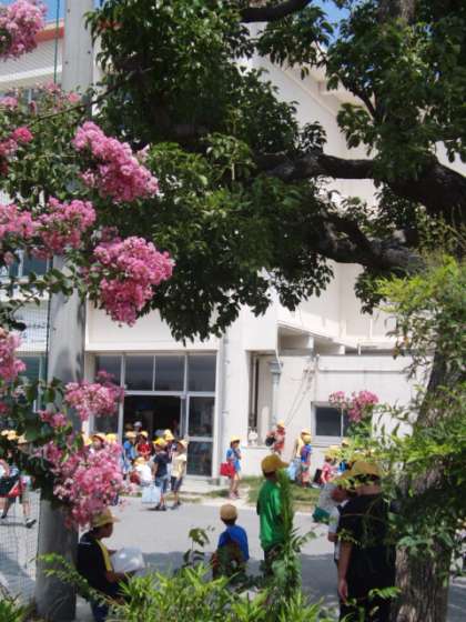7月31日(木)夏休みの1回目の出校日でした。太陽がとてもまぶしく、登下校するだけでも汗が吹き出してしまう一日でした。サルスベリの木も赤い花が満開になっています。各クラスで日誌の答え合わせをしたり、田の草取りをしたりして、学校全体が元気な声でいっぱいになっていました。
