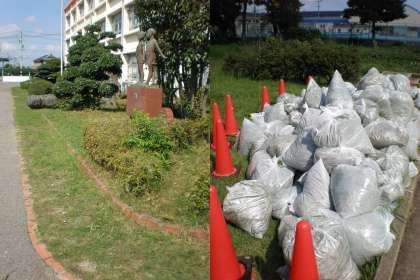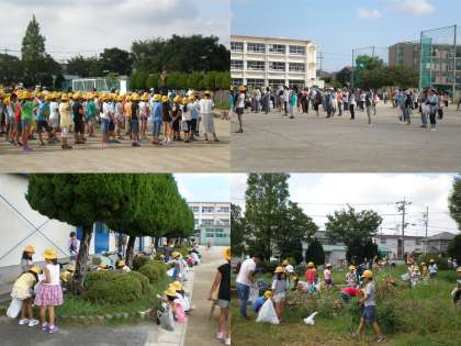 9月2日(火)8時30分から「親子除草」を行いました。長雨の影響で草が生い茂っていましたが、多くの保護者の方にご協力いただき、雑草でいっぱいのゴミ袋がたくさん集まりました。植え込みの周りもとてもすっきりしています。ありがとうございました。PTA保健安全部の方もお茶等の準備、お疲れ様でした。