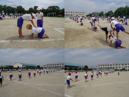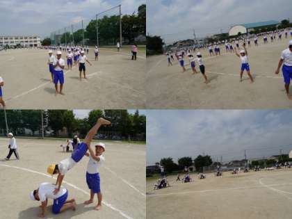 9/10(水)3限目と4限目の組み立て体操の様子です。今日は、フィナーレの技にチャレンジしました。みんなの一生懸命が大変伝わってきました。