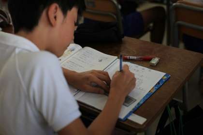 9月に入り、5・6年生はほぼ毎日、体育で組立体操の練習を行っています。しかし、それだけではいけないのが高学年、大変な練習の合間を縫って、勉強にもしっかりと取り組みます。