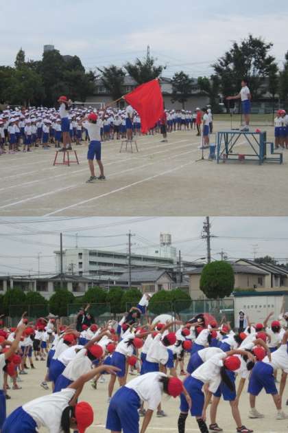 9月24日の運動会全体練習は、「開会式、ラジオ体操、応援練習、児童会種目、整理体操、閉会式」と、全体に関わる予行練習というような形で行いました。