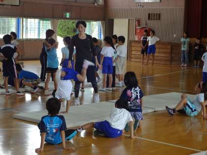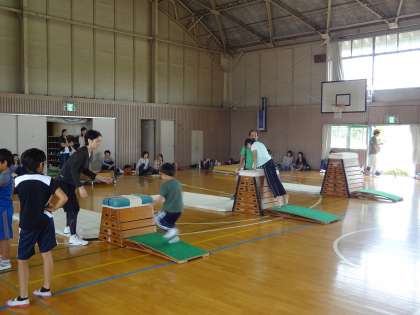 10月11日(土)本校体育館で、小野げんきっずの方に講師に来ていただき、ふれあい教育セミナー「体操教室」を行いました。準備運動、マット運動、跳び箱、鉄棒など、一人一人に声をかけて、ていねいなご指導をいただきました。ありがとうございました。子ども達は少しずつコツをつかんでいったように思います。これをきっかけにして普段から繰り返し練習していけるといいと思いました。