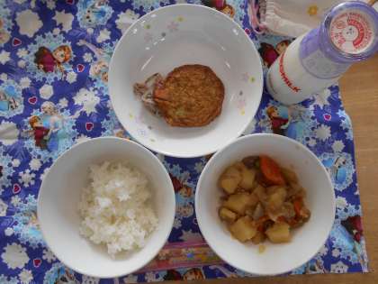 9月30日の給食は、ごはん 牛乳 肉じゃが お好み焼きはんぺん もやしのゆかり和え 卓上中濃ソース でした。
