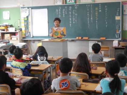 今日から28日まで、どんぐり読書週間です。今朝は2年生の各教室で読み聞かせを行いました。