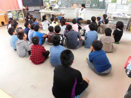 どんぐり読書週間中の今日、マザーグースの皆さんが、4年生に読み聞かせをしてくださいました。