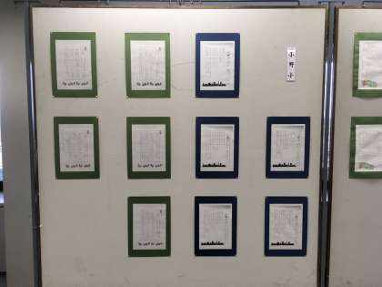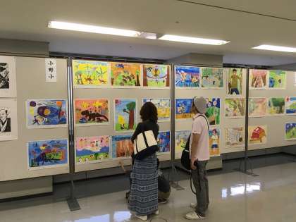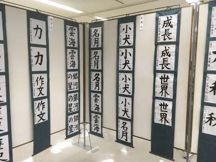 10月15日、16日の春日井まつりの期間中、市役所11階の展示フロアーにて図工、書写教育店の特選作品が掲示されました。