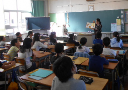 10月18日(火)は、大雨が降った昨日と違ってさわやかな朝でした。5年生の各クラスで読み聞かせを行いました。
