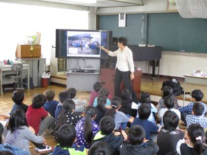 10月17日(月) JICA防災教育担当の近藤ひろ子先生に東日本大震災の様子や南海トラフ地震について、お話をしていただきました。