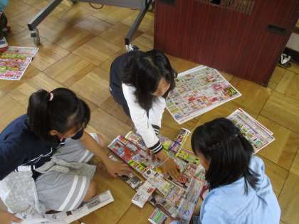 「マグニチュードと震度のちがい」「春日井市の地盤の堅さ」など地震について質問も出て、子どもたちからも学ぼうとする姿勢が見えました。身近な広告紙を使って避難生活に役立つ座布団作りにも挑戦しました。