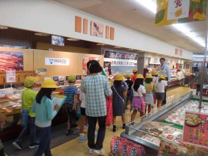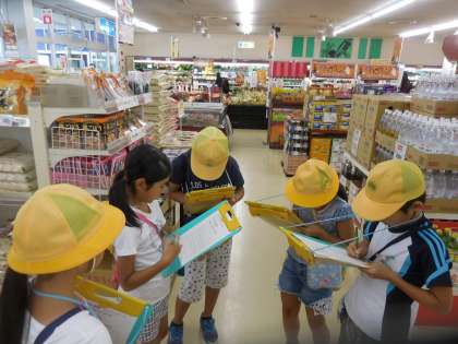 食品売り場では、おつとめ品の表示の仕方や値札の色分けの工夫に気づき、買い物のコツをたくさん発見することができました。