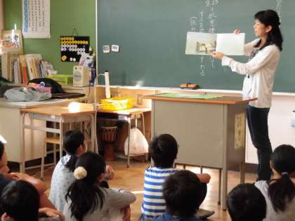 優しく、耳にすっと入ってくるような語りで子どもたちは物語に引き込まれるようにして聞いていました。