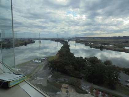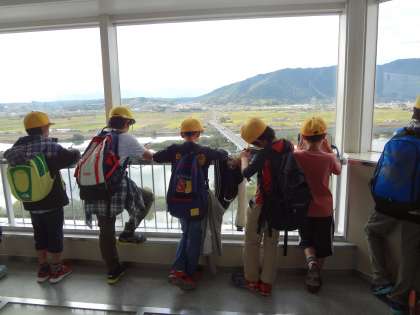 タワーに登り、木曽三川の様子を見て、驚いていました。