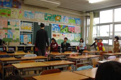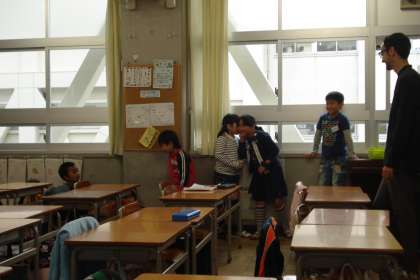 教室全体を使って、みんなで伝言ゲームをしました。