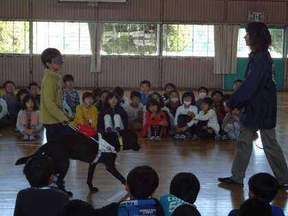 11月11日(金)に、総合的な学習の時間の一環で盲導犬について勉強をしました。