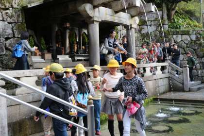 音羽の滝では、「小指を濡らして乾くまで喋らないと願いが叶う」と聞いたので、みんな口を閉じて指を乾かしていました。