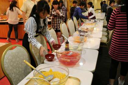 料理をいっぱい味わった後でも、デザートとジュースは大人気でした。料理とは別腹のようです。