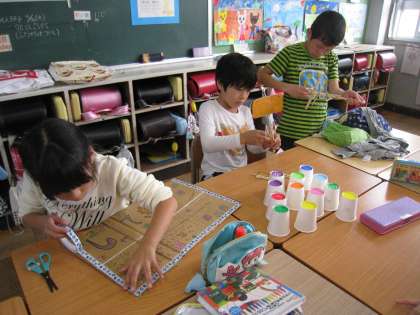 生活科で12月1日におもちゃ祭りを行います。今、ペットボトルや段ボールなどを使って、工夫しておもちゃを作っています。1年生に遊んでもらうのが楽しみです。