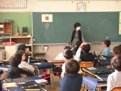 12月2日(金)、3学期の書の作品展に向けて、講師の本多まり子先生をお迎えして書作品の制作に取り掛かりました。クラスごとにがんばりました。