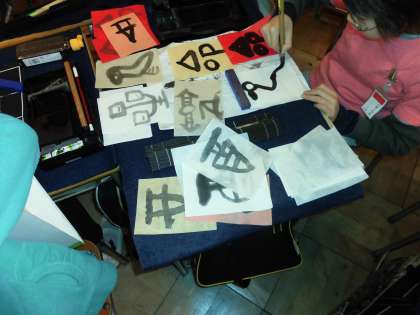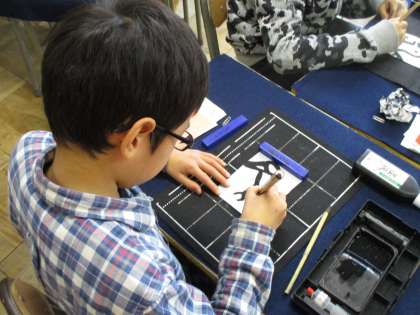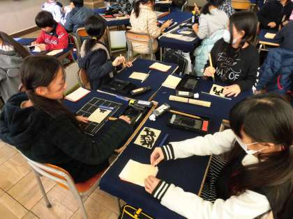 12月12日・13日と、紫舟先生に来ていただいて、書作品づくりをしました。