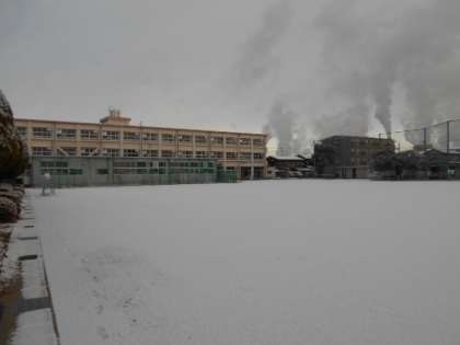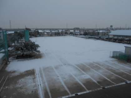 雪景色の朝です。 雪だるまをつくるほどの雪ではありません。うっすらと雪が積っています。