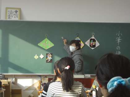 小筆をつかって名前を書いたり、台紙にマスキングテープを使って飾り付けをしたりしました。それぞれの思いの詰まった作品が完成しました。書作品展が楽しみです。