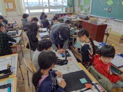 1月20日(金)、本多まり子先生をお招きしての書道作品制作の最終日でした。