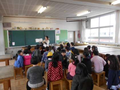 2月1日(水)の昼放課、図工室にて、読み聞かせを行っていただきました。
