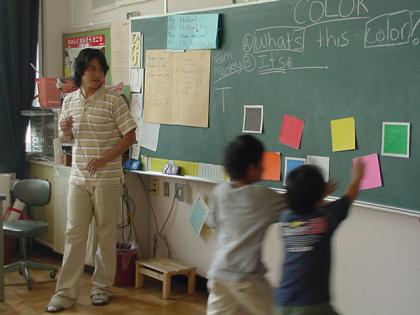 色のカードを早く取るゲームをしたり、カラーバスケットをして