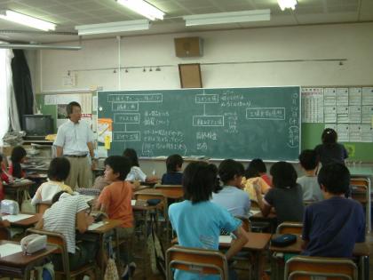 5年生の授業参観です。社会の授業と,コンピューターによるホームページ作りの様子です。