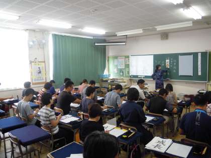 8月29日(水)の午前中は、昨年まで本校でお勤めされていた野村英診子先生を講師にお招きして、書道の実技研修を行いました。