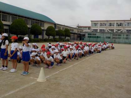 今日は、徒競走の練習をしました。5・6人ずつ走る予定です。