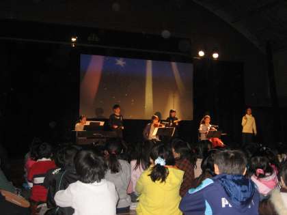第二部の影絵では,ピーターパンのお話と共に場面に合った生演奏がありました。