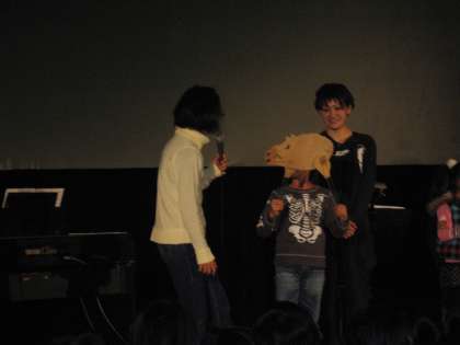 子どもたちは,本物のように動く影絵ときれいな色の背景や照明に驚きの声をあげていました。