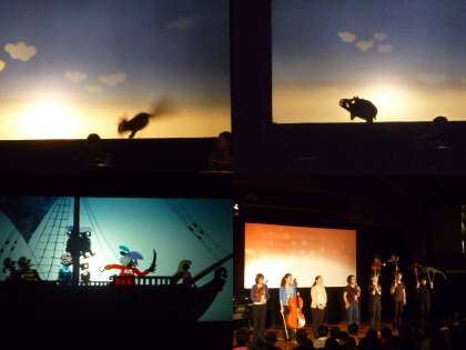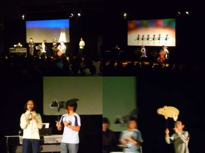 25日(水)、高学年は午後から芸術鑑賞会がありました。影絵と電子ピアノ、チェロ、バイオリンの生演奏を鑑賞しました。影絵は5年生の二人の子どもが実際に体験することができました。