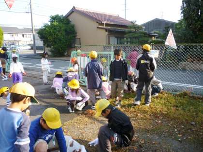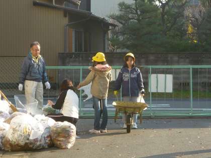 11月30日(月)、8時30分から縦割り班で学校の落ち葉拾いを行いました。わずか15分の活動でしたが、場所によってはたくさん集めていたグループもありました。
