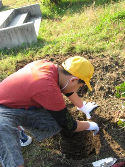 10月の最後の日、きれいな秋晴れの中、サツマイモの収穫を行いました。思ったより土がやわらかかったため、みんなスムーズに掘ることができました。