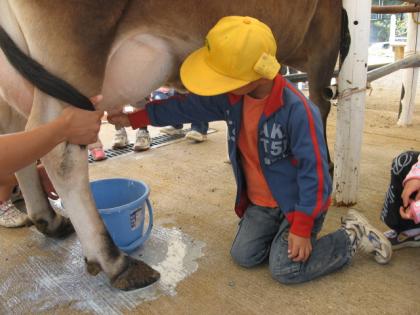 牛の乳しぼりをしたり、やぎにえさをあげたりして、