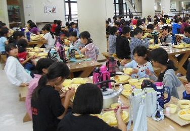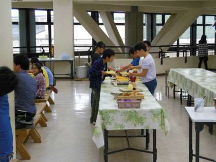 パン、ごはんの選択ができるのですが、パン・ごはんの両方食べている子が多かったです。しっかり食べて、2日目のエネルギーにしてください。