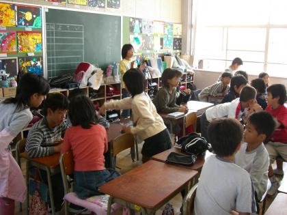 11月10日(金)のおのタイムは、教室で2年生と遊びました。なかよし学級ごとに、王様ゲームやいすとりゲーム、伝言ゲームをしました。責任者を中心に2年生をやさしくリードし、楽しく遊ぶことができました。