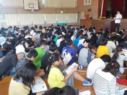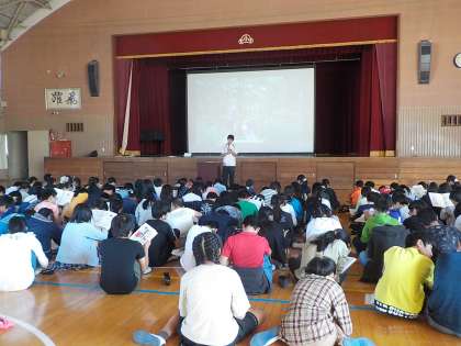 修学旅行に向けて、スライドで確認しながら、行動の詳細を確認しました。