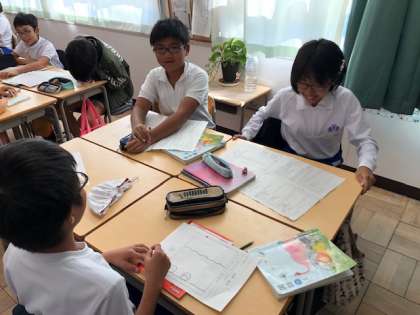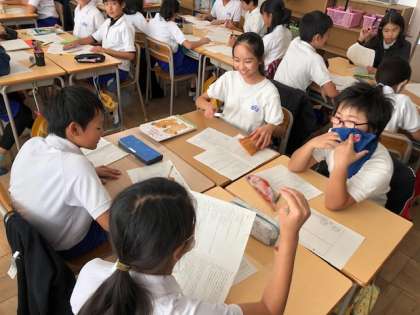 「やまなし」の語り手はどこから語ってるのか、みんなで話し合っています。