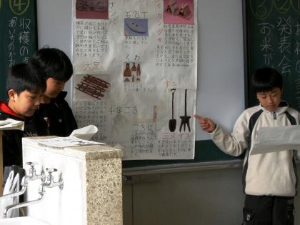 1月30日,家庭科室で収穫祭を行いました。みんなで作ったお米でおにぎりを作り,お世話になった方々と一緒におにぎりを食べました。また,グループ研究の代表発表も行ったり一年間の活動をスライドで振り返ったりしました。