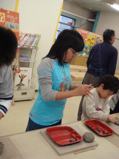 楽しく粘土で遊ぶ時間は1時間あまりにもおよびましたが,みんな集中して行っていました。その後,2階に上がり…。