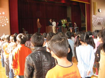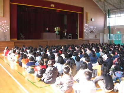 この1年間子どもたちは大きく成長しました。毎日の授業はもちろん,新しく始まった総合的な学習の時間やさまざまな行事などを通して,子どもたちは仲間と協力して一つ一つ達成感を味わい,次への目標をもちチャレンジしていく姿勢を学びました。保護者のみなさまの温かいご支援には大変感謝しております。一年間本当にありがとうございました。