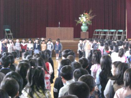 ピカピカのランドセルを背負って,笑顔で登校してきた1年生。着任式・始業式にちゃんと参加できるかと心配しましたが,新しく本校に赴任された先生の紹介と始業式での校長先生の話をしっかり聞くことができました。