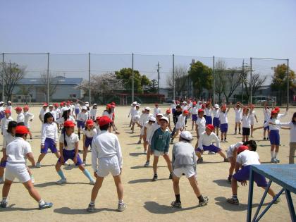 4時間目、初めて学年で体育を行いました。準備体操の後、クラス対抗のドッジボールを行いました。毎週木曜日の4時間目は合同体育です。学年そろって様々な活動をしたいと思います。