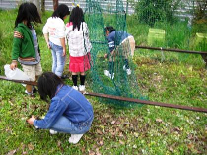 4年生はヘチマを植えて観察します。6時間目にヘチマ棚周辺の草取りを行いました。小雨が降っていましたが、みんなとても一生懸命に草取りを行ってくれました。来週あたりにヘチマの種をまいて育てていきたいと思います。