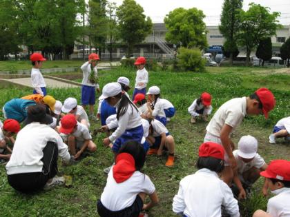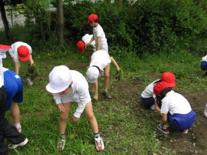 生活科で植える野菜畑の草取りをしました。袋にいっぱいになるまで草取りを頑張りました。きれいになった畑に野菜を植えるのが楽しみです。